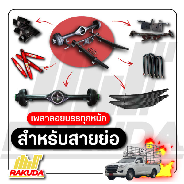 เพลาลอยRakuda – สามารถรองรับน้ำหนักได้ถึง 3 – 5 ตัน ซึ่งตอบโจทย์กลุ่มคนใช้รถสายบรรทุกหนักวิ่งระยะทางไกล ซึ่งจะมีความแตกต่างจากเพลาเดิมที่ติดมากับรถกระบะโดยทั่วไป